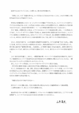 Please come and experience what Masashi Yamamoto, who captures contemporary works with an original approach, will perform at the venue.